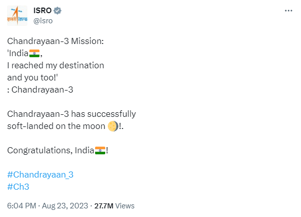 Humanity will remember the day not because India landed on the Moon today, but because India landed SOUTH of the Moon today, India was courageous enough to explore the unseen side of the Moon.